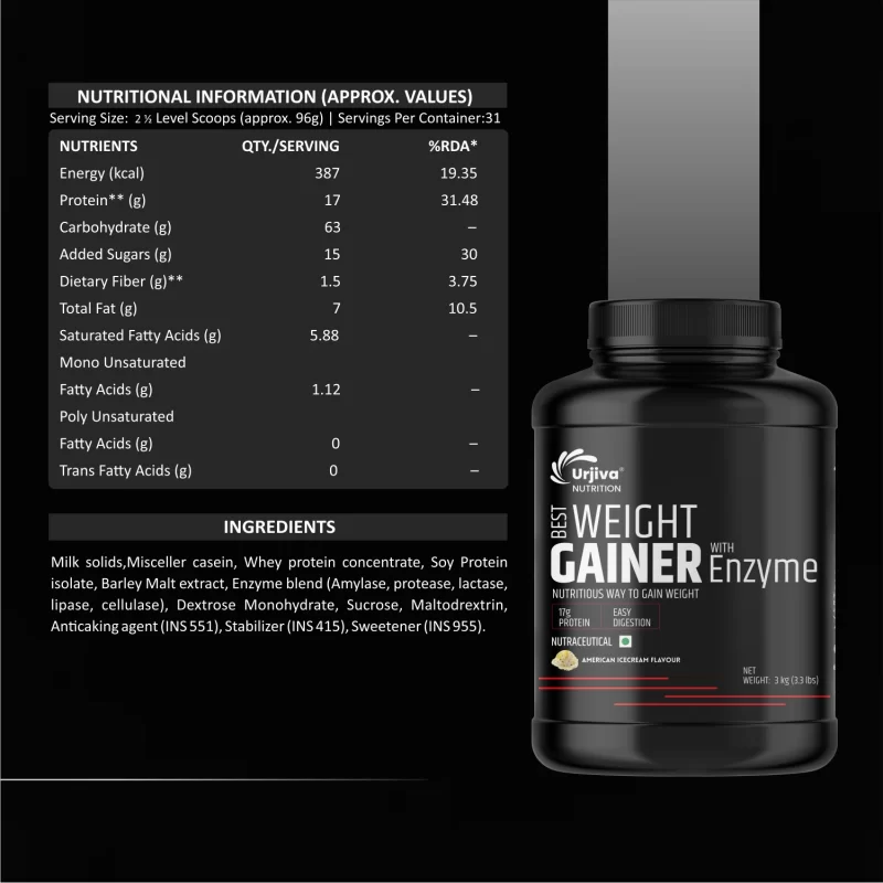 At Urjiva Nutrition, we combine science, taste, and quality to create supplements that truly make a difference. Our Weight Gainer in American Ice Cream Flavor is just one example of how we blend premium ingredients with exciting flavors to support your fitness journey.