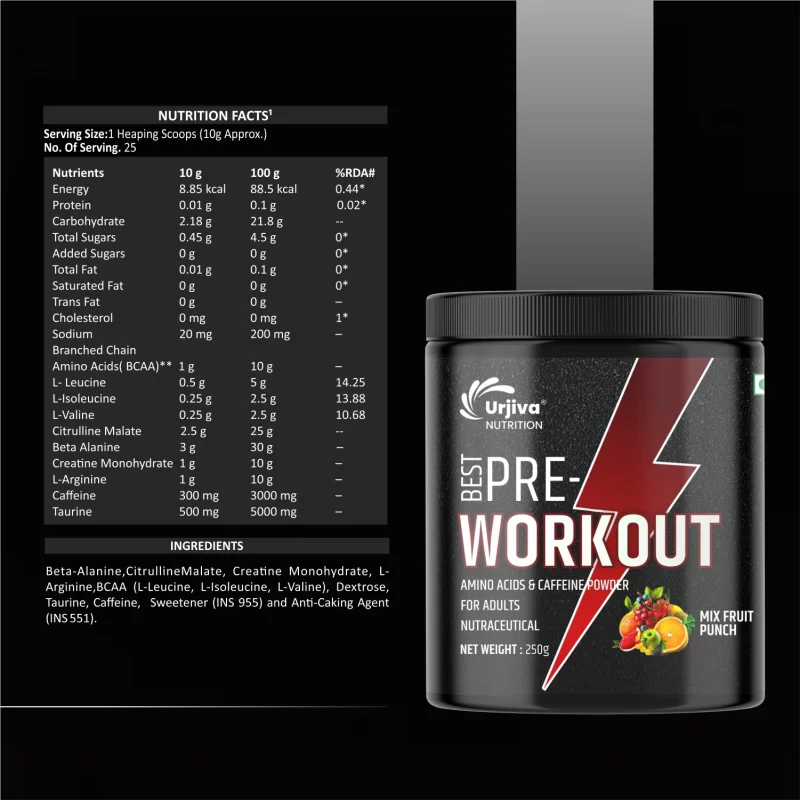 At Urjiva Nutrition, we combine science, taste, and quality to create supplements that truly make a difference. Our Pre -Workout Mix Fruit Flavor is just one example of how we blend premium ingredients with exciting flavors to support your fitness journey – one scoop at a time.