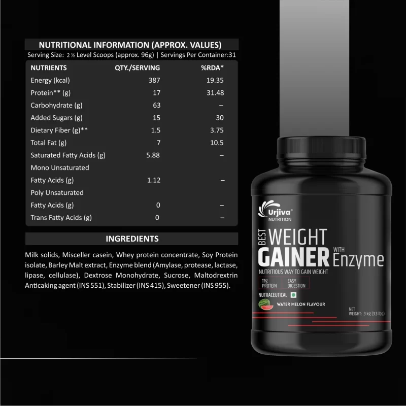 At Urjiva Nutrition, we combine science, taste, and quality to create supplements that truly make a difference. Our Weight Gainer in Watermelon Flavour is just one example of how we blend premium ingredients with exciting flavors to support your fitness journey – one scoop at a time.